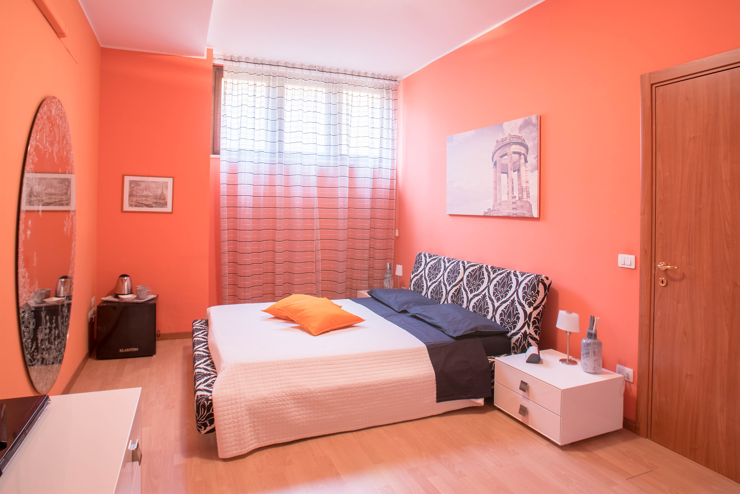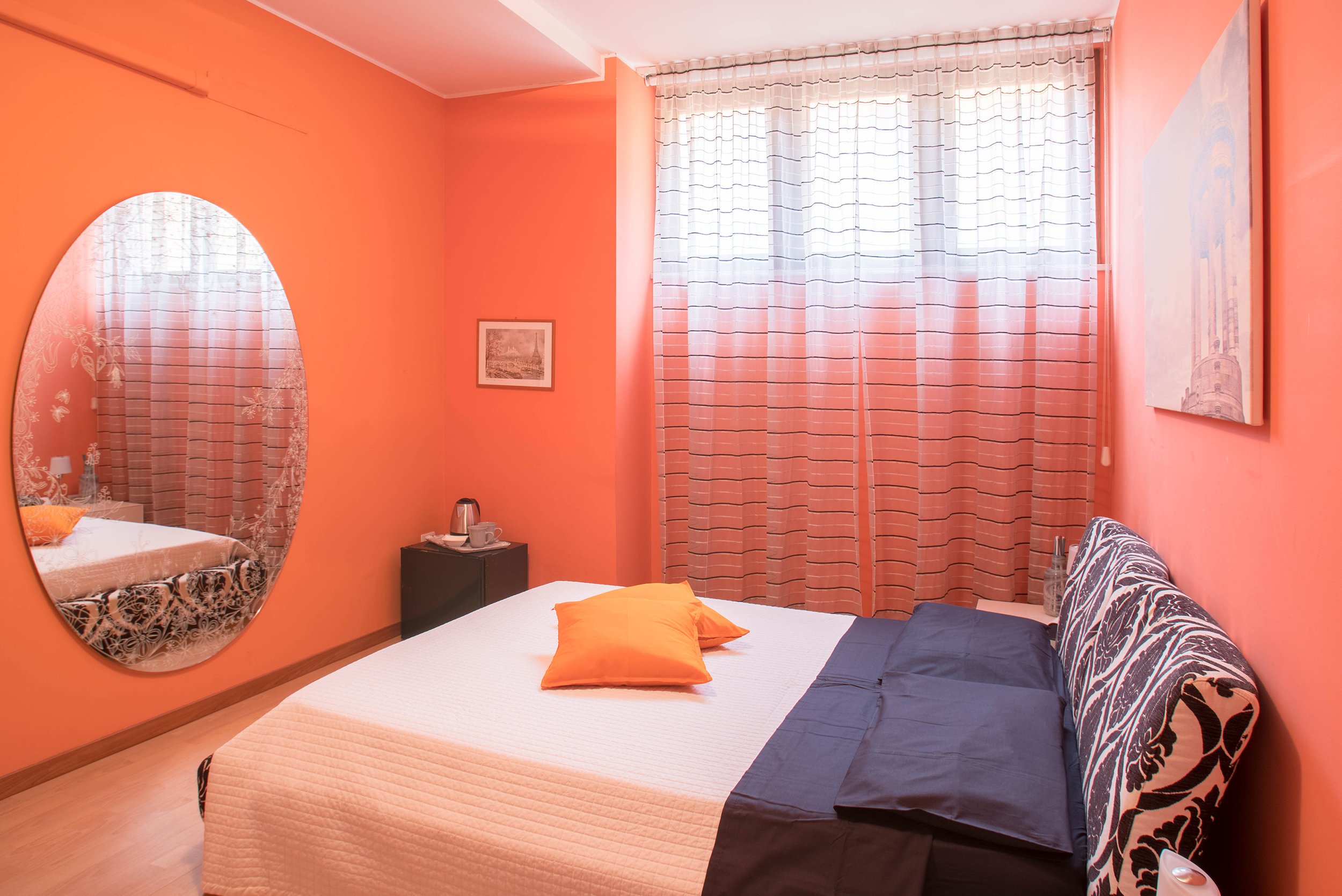 La camera Louis è la seconda camera della struttura Juliette, allestita con toni chiari tendenti all’arancione, può essere prenotata sia come doppia matrimoniale, sia come singola.